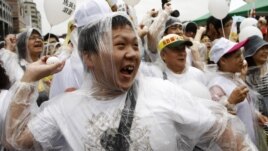 Protester Chen Hsien-che, a 50-year-old cosmetics worker from northern Taiwan, says he is concerned that the presidentâs policies will allow Taiwan to be consumed by the Communist rival.